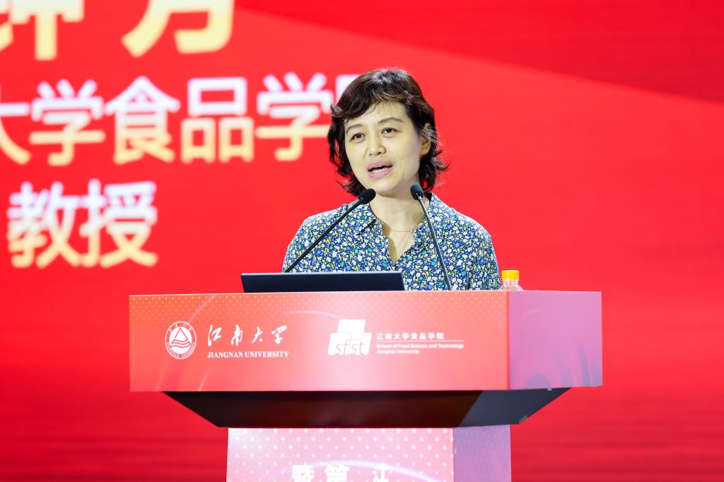 在主题报告环节,四位专家分别围绕食品科学前沿领域和相关热点问题进行分享发言。北京三元食品股份有限公司首席科学家陈历俊作“母乳研究助力全民健康”主题报告。上海长征医院营养科主任李娟作“营养与健康——糖尿病患者的营养管理”主题报告。南京理工大学计算机科学与工程学院教授周涛作“AI赋能消化疾病诊疗及智能营养干预”主题报告。江南大学未来食品科学中心教授钟芳作“食品感官感知与消费者认知分析新趋势”主题报告。