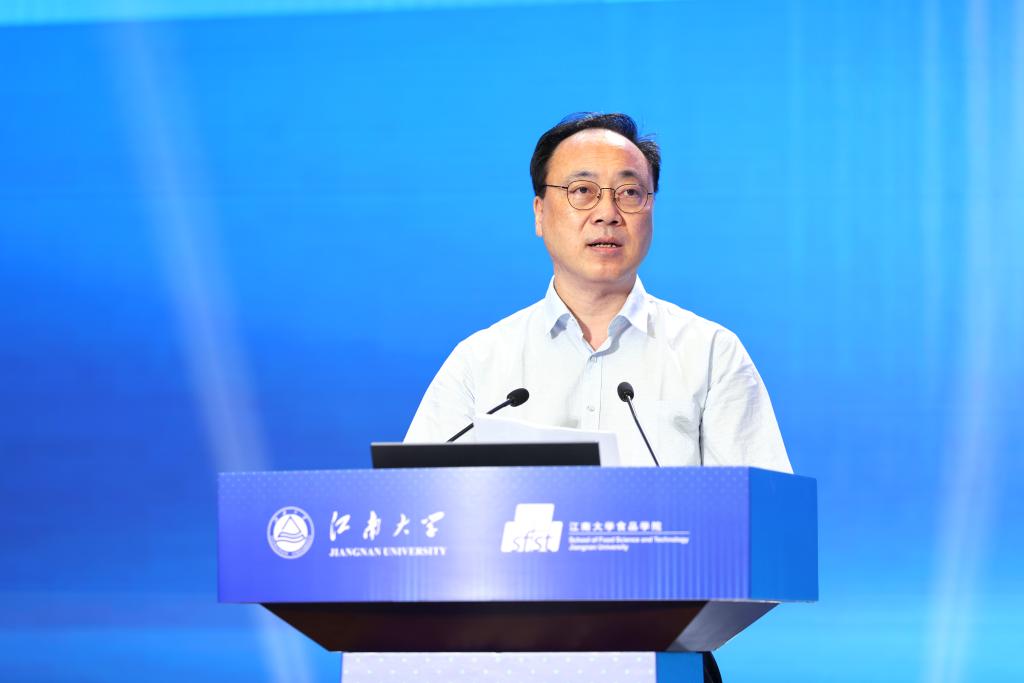 陈卫首先致欢迎辞。他指出,本次大会是贯彻落实习近平总书记“大食物观”和健康中国战略的重大响应,是顺应新型食品与大健康产业协同发展与科技创新诉求的“及时雨”。江南大学愿同产业领域的高校、企业同仁们一道,共同发挥食品科学在大健康时代的引领强化作用、共谋新型食品前沿科技创新、共享食品行业发展红利、共促健康中国建设落地。