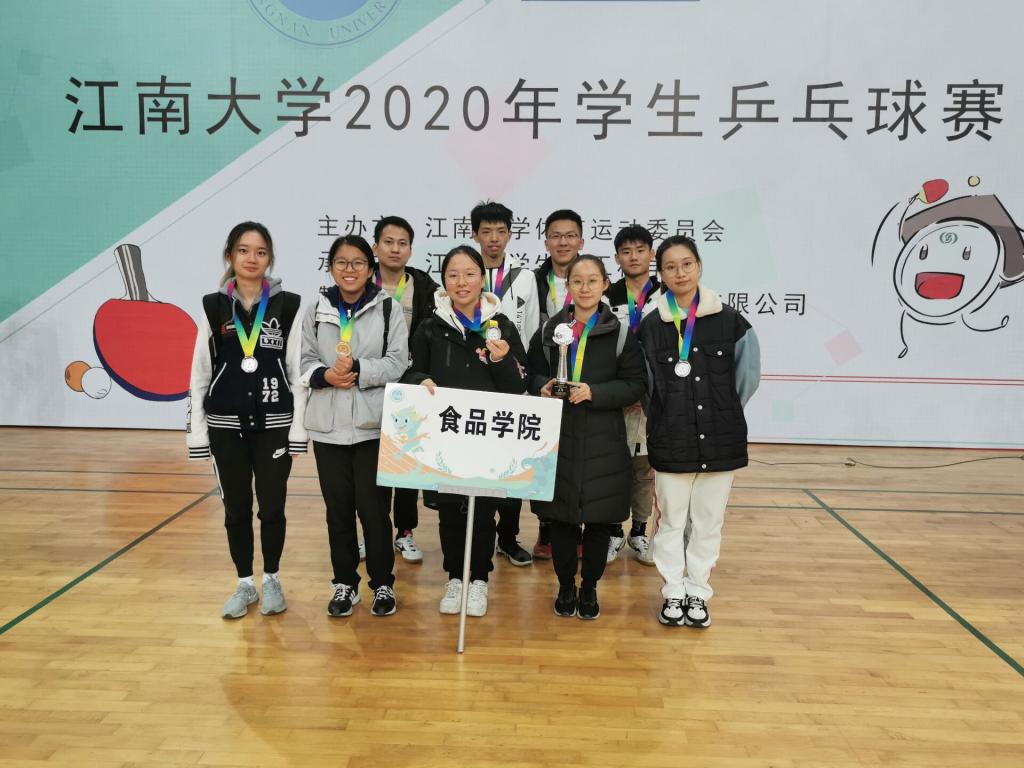食品学院获江南大学2020年学生乒乓球比赛A组亚军