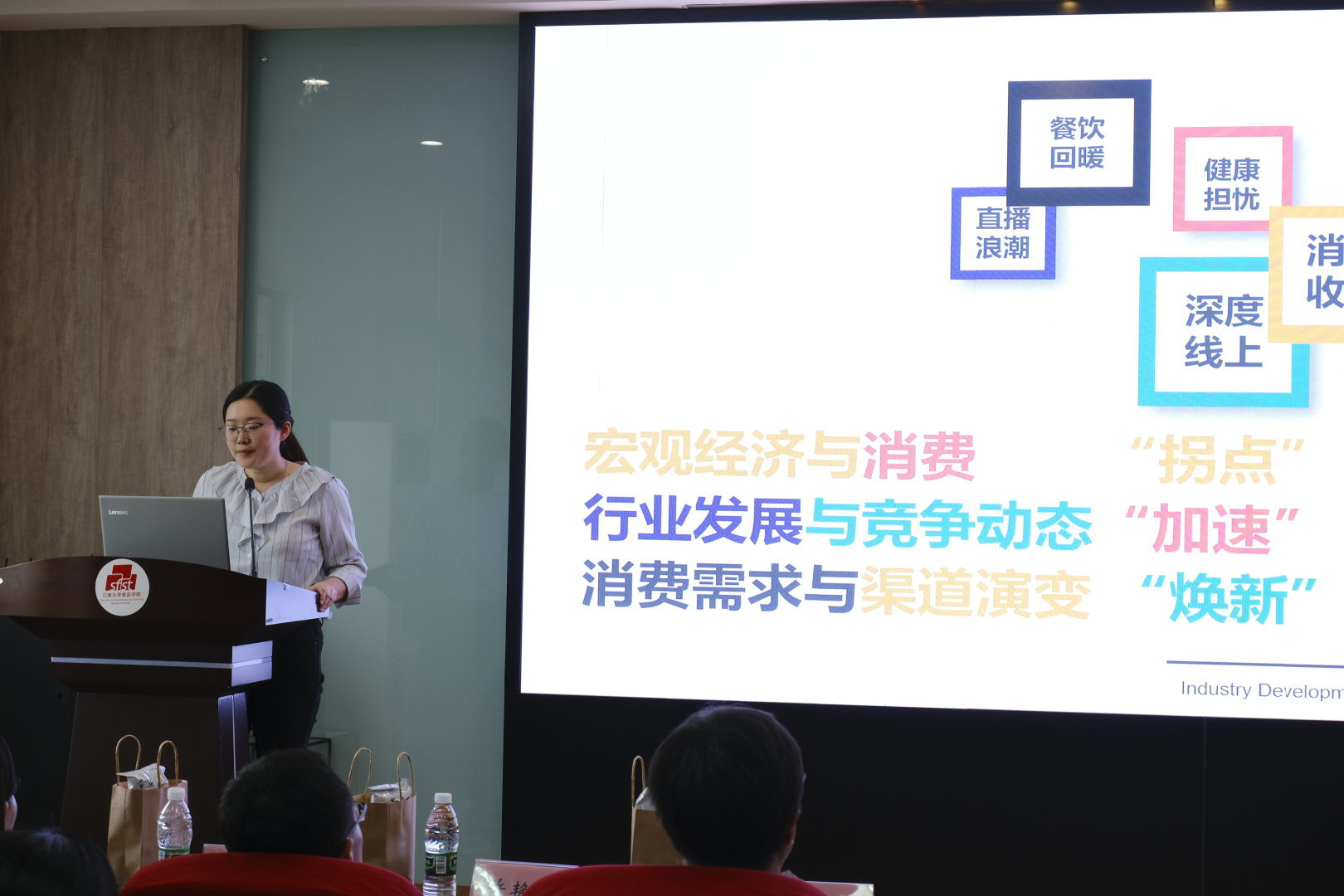 调味品俱乐部学术指导教师姜启兴为大赛致辞,他希望同学们能够通过比赛展示出创新元素、专业优势和学科风采。欣和公司研发部高级工程师勇倩倩分享了公司以及调味品行业的情况,他表示非常期待选手们的产品。本次决赛共有11支参赛队伍,经过参赛队伍答辩、综合评委及大众评审综合打分,酸酸木耳牛肉酱获一等奖,新疆米粉口味酱、《+1碗》获二等奖,枣有胜蒜、沙茶咕咕牛肉酱、就这香获三等奖。