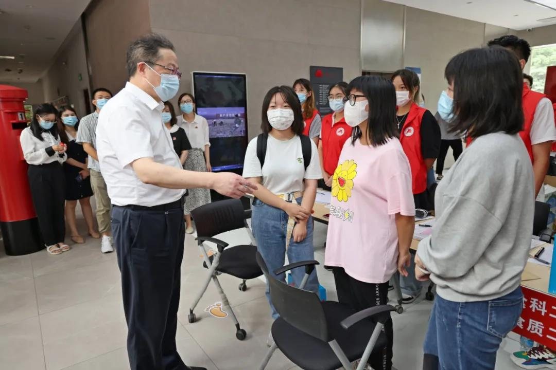 新生报到过程中,校党委书记朱庆葆、校长陈卫,校党委副书记戴月波、副校长张影陆来到食品学院看望新同学。新生讲述了自己选择食品专业的缘由,与好友做好约定,最终一同圆梦江南食品。