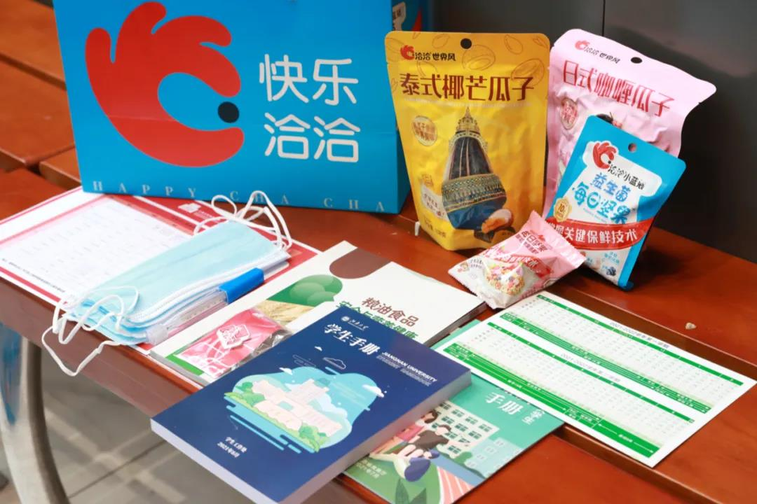 为增强新生们的归属感和专业认同感,学院为新生定制了专属“品”字院徽,设置了“食光邮筒”,引导食品学子做有品格、品质、品味的新时代青年。洽洽食品股份有限公司作为食品学院的合作单位之一,免费提供了1000份精美零食大礼包,内含益生菌坚果、风味瓜子等。学院同时配备了粮油食品营养安全册、学生手册、口罩、体温计等物品,给新生们带来美味、温馨的“食”光体验。
