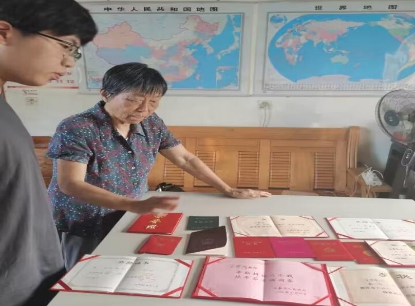 老年党员,作为党多年的忠实实践者,自是有自己的爱党风骨。采访老年党员的两位同学以此为主题开展了老年党员寻访活动。一位采访了供销社退休老党员杨进城。在讲述入党后的故事时,他提到当年单位基建,为了节约费用,他和其他的党员同志们一直奔走于工作前线,埋头苦干,每天下班后推小车到乡下收砖头,到凌晨才休息。另外,他讲述到作为党员要有舍己为人的精神。单位每年评定奖金时,他会发扬风格、团结同志,主动将获奖名额让给经济有困难的同志。另一位采访了从教书育人的讲台上退下来的老党员金翠萍同志,过程中她展示了自己优秀共产党员、优秀班主任等几十项荣誉,她说道“我对自己的党员身份感到无比自豪。”