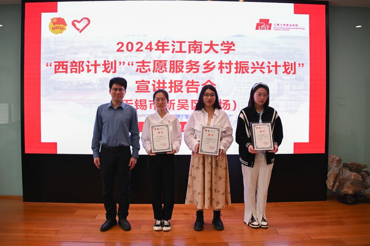 为深入学习贯彻习近平新时代中国特色社会主义思想和党的二十大精神,引导和鼓励高校毕业生积极投入基层建设与乡村振兴火热实践中,4月28日下午,2024年江南大学“西部计划”“志愿服务乡村振兴计划”宣讲报告会(第七场无锡新吴区专场)在食品学院D912报告厅举行。无锡市新吴区团区委副书记林星州、食品学院分团委书记李金杰、毕业班辅导员王文燕出席活动,100余名应届毕业生及在读研究生共同参加活动。宣讲会由本科生辅导员曹敏主持。
