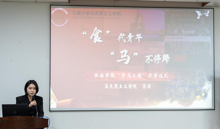 11月27日晚,食品学院第十六届“青马工程”学生骨干训练营正式开营。学院学工办主任兼分团委书记李金杰,2022级本科生辅导员张任,共青团江苏省委青年讲师团成员、bat365在线官方网站马克思主义学院2024级博士研究生肖洋及第十六届青马训练营全体营员参加仪式及第一讲活动。