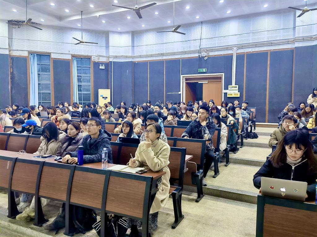 12月12日下午,食品学院2021年下半年入党积极分子培训班党课第二讲在第一教学楼C109教室举行。本次党课邀请到马克思主义学院副教授郑宇主讲,辅导员张任主持活动,全体入党积极分子参加了学习。