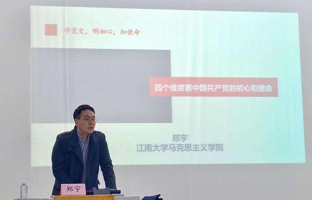 郑宇老师从四个维度讲述了中国共产党的初心和使命。首先,从党的旗帜看中国共产党的初心与使命展开,明确指出马克思列宁主义、毛泽东思想、邓小平理论、“三个代表”重要思想、科学发展观、习近平新时代中国特色社会主义思想是中国共产党伟大的想旗帜。其次,从党的历史维度指出,建立中国共产党、成立中华人民共和国、推进改革开放和中国特色社会主义事业是五四运动以来我国发生的三大历史性事件,是近代以来实现中华民族伟大复兴的三大里程碑。再次,带领同学们学习了党对发展蓝图的擘画,强调了信仰、信念、信心的重要性。最后,郑老师引用习近平总书记在庆祝中国共产党成立100周年大会上的讲话,勉励同学们要不忘初心,坚定理想信念,牢记党的宗旨,坚持科学的理论指导,弘扬伟大建党精神,勇于直面挑战。