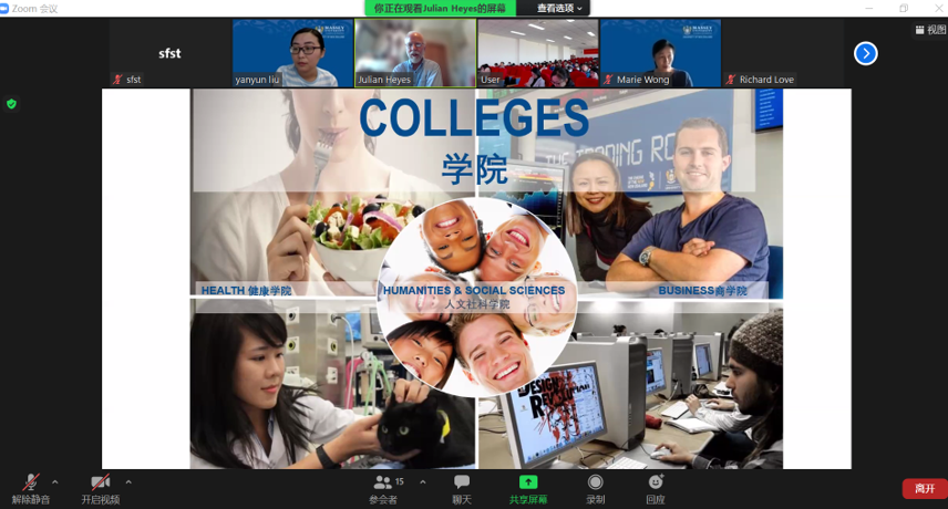 典礼伊始,梅西大学食品学院院长Julian Heyes教授现场连线,介绍了梅西大学优美的校园环境及开放严谨的学术氛围,并欢迎同学们到新西兰梅西大学学习和生活;系主任Richard Love博士对中外合作办学项目进行了简要介绍,他希望中外合作办学班能引入先进的教学理念,能够把国际化教育模式融入专业人才培养中,不断提高人才培养质量。
