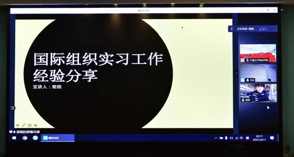 2021年4月11日晚,海源论学系列讲座第四讲在食品学院D912隆重举行并取得圆满成功。本次讲座嘉宾邀请了优秀校友梁程作题为“食品人在国际组织的职业发展”的线上报告,食品学院国际交流秘书蒋敏主持报告,中外合作办学班全体同学参加。