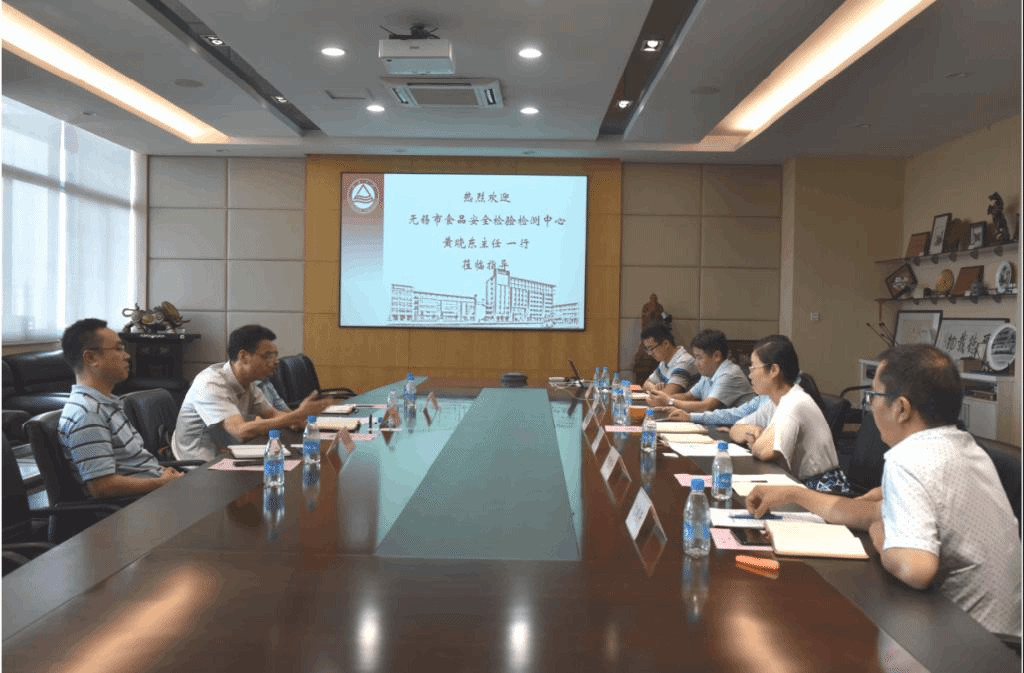 2020年8月21号,无锡市食品安全检验检测中心主任黄晓东、副主任冯永巍、副主任周宇一行来访我院,食品学院院长刘元法,党委书记傅莉莉、国家功能食品工程技术研究中心副主任王周平、江南大学地方服务和合作办公室副主任王恒、分析食品安全学研究所严秀平教授和沈晓芳教授等人参加了会谈。