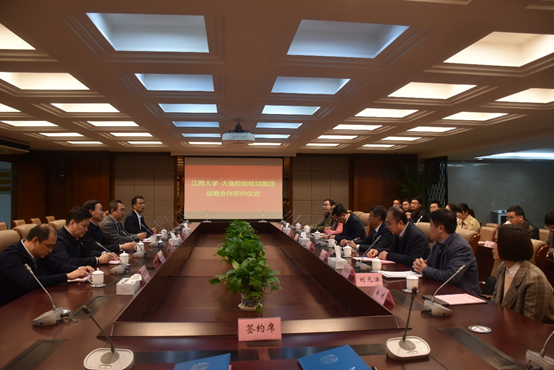 座谈交流结束后,江南大学-大连检验检测集团校企战略合作协议书和共建江南大学-大连检验检测集团校企协同创新实验室框架协议书签约仪式正式进行。此次签约,校企双方本着“校中有企、企中有校、校企同质、融合发展”的原则,建立校企深度融合机制,努力打造新时代、新形势下的产教合作共同体。双方将在资源共享、协同攻关、技术转化、市场推广等方面优势互补、互惠互利,为建立长期、全面的校企战略合作关系奠定基础。