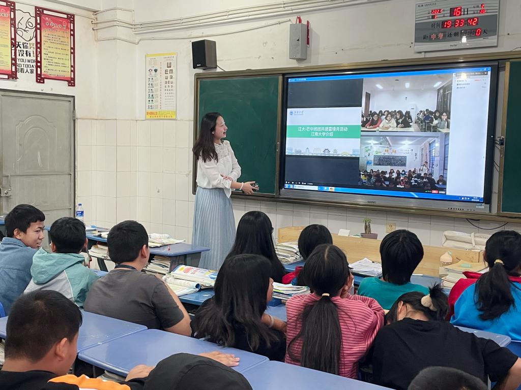食科1805团支部团支书刁舒漫为芒宽中学的同学们介绍江南大学
