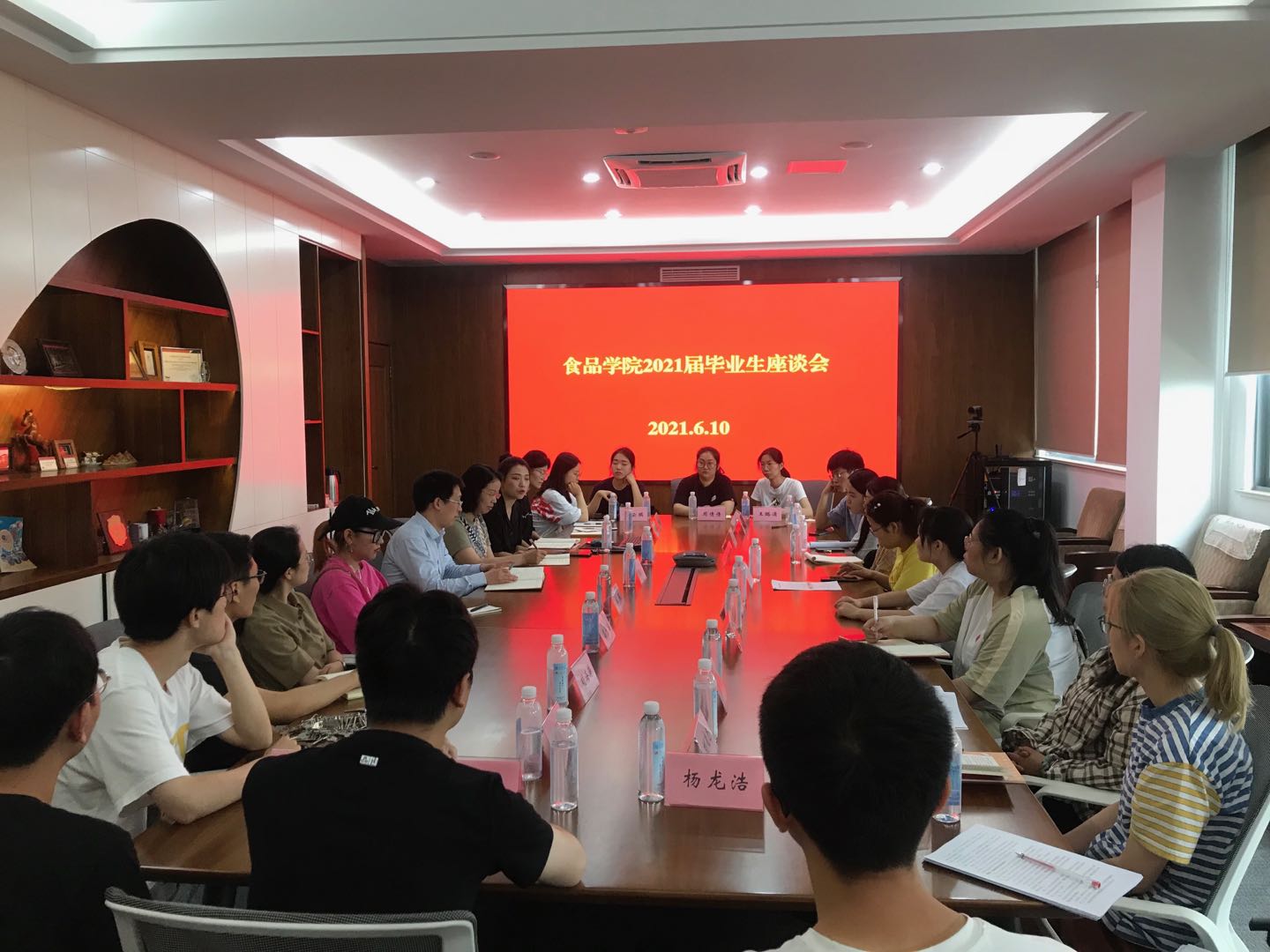 6月10日上午,食品学院2021届毕业生座谈会在食品楼D925会议室举行。学院党委书记傅莉莉、副院长王立、毕业生辅导员胡晓丹出席座谈会,22名毕业生代表参加了座谈会。