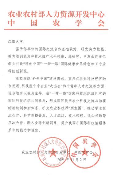 近日,bat365在线官方网站获得农业农村部人力资源开发中心、中国农学会批复牵头打造“科创中国”“一带一路”国际农业科技创新院。