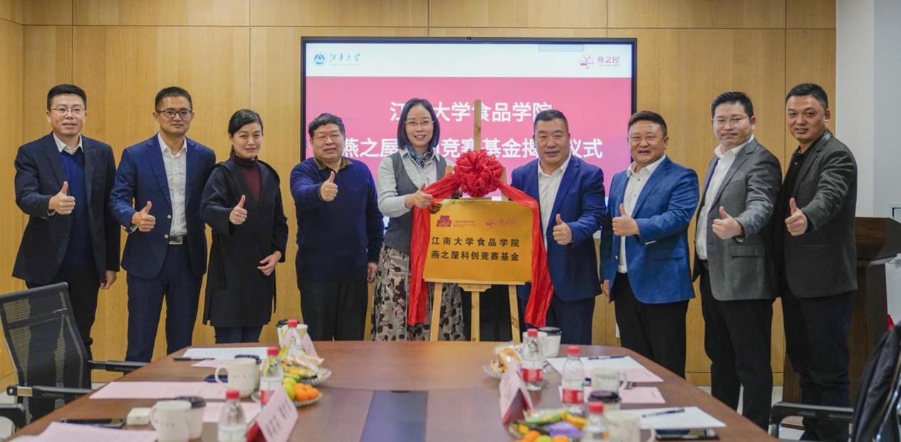 12月5日,食品学院燕之屋科创竞赛基金揭牌仪式在未来食品中心B209会议室举行。未来食品中心主任陈坚院士、食品学院党委书记傅莉莉、食品学院党委副书记魏珍吉、钟芳教授,厦门燕之屋生物工程股份有限公司总裁李有泉、监事长付煜、副总经理范群艳等出席活动。