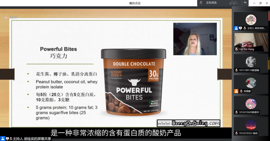 在大赛主题乳蛋白的专业知识讲解环节,美国乳品出口协会顾问Donna Berry讲述了“乳蛋白的力量,推动潮流创新”;协会全球原料技术营销服务副总裁Annie Bievenue讲述了“美国乳制品渗透物份的益处、多功能性及应用机遇”,使参赛者更加了解乳品渗透物粉的市场需求和成品添加现状。
