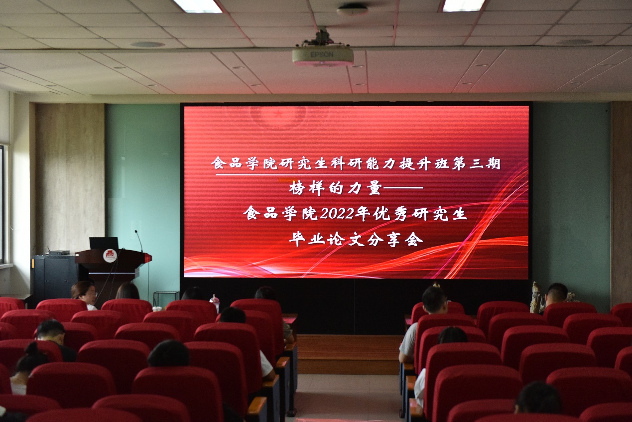 为提升食品学院研究生的毕业学位论文质量,促进学生之间的学术交流,帮助同学们更好地突破学术研究过程中的瓶颈,促进研究生与导师沟通交流,撰写出高质量学位论文,6月15日下午2点,食品学院在D912举办了“榜样的力量—食品学院2022年优秀研究生毕业论文分享会”活动。此次活动共邀请了八位在答辩和盲审中成绩优秀的研究生为大家进行分享。食品学院研究生线上线下共80人参加了此次活动。