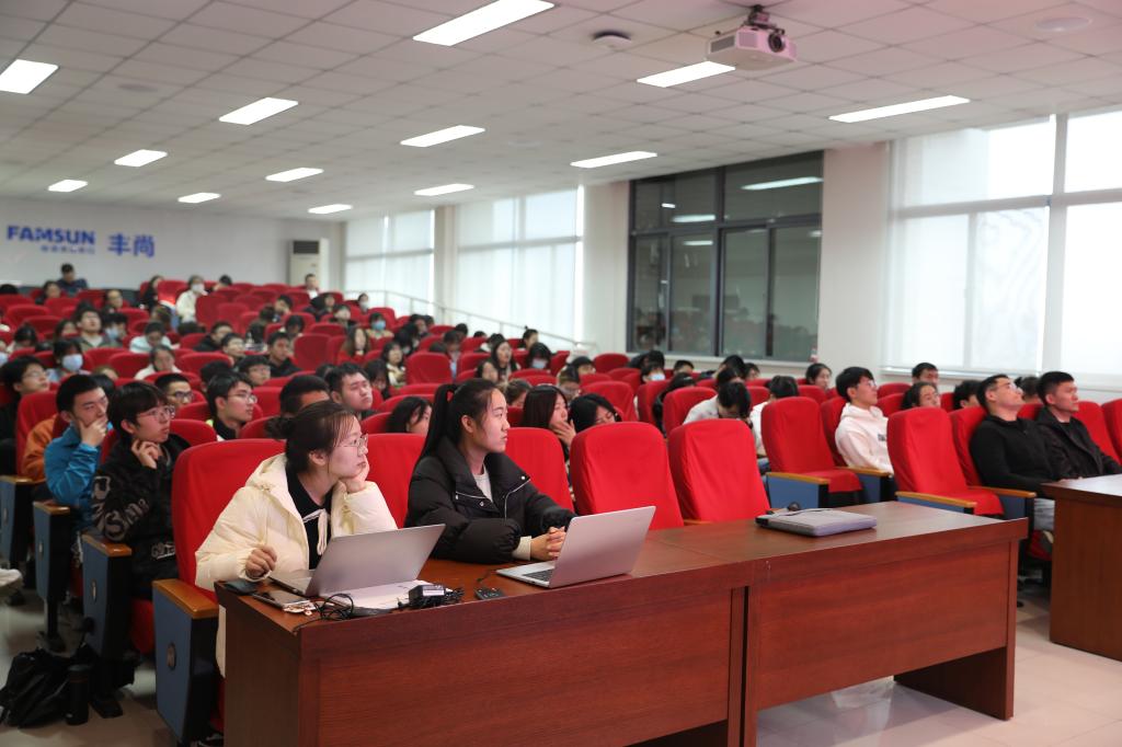 随后,高德福就企业招聘岗位、人才培养体系和员工福利待遇等问题进行详细介绍。合理系统的培养体系、先进智能化的工作车间、优厚的员工福利,无一不让学生们心动。了解了企业和应聘环节后,不少同学们萌生出投递简历的想法。