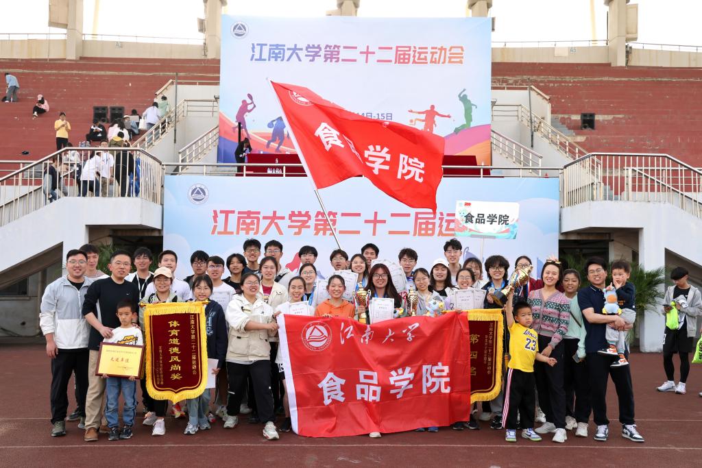 校运会赛场上,学院组建由65名教职工和106名学子组成的食品代表队,共参与43个竞技体育类项目和25个大众体育类项目,包括100米、110米栏、三级跳远、铅球等田径项目,以及背夹球竞速、花毽围踢等大众体育项目、“奔跑吧,江南”学生万米接力赛。食品师生充分发扬了“江南食品人,敢为天下先”的精神气质,在赛场上挑战自我、磨炼意志、齐心协力、奋勇拼搏!最终学院荣获教职工团体总分第2名,学生团体总分第3名,其中学生男子团体第4名、学生女子团体第3名。学院荣获体育道德风尚奖、2022年度江南大学学生群众体育工作先进单位。食品师生荣耀江南,硕果累累!