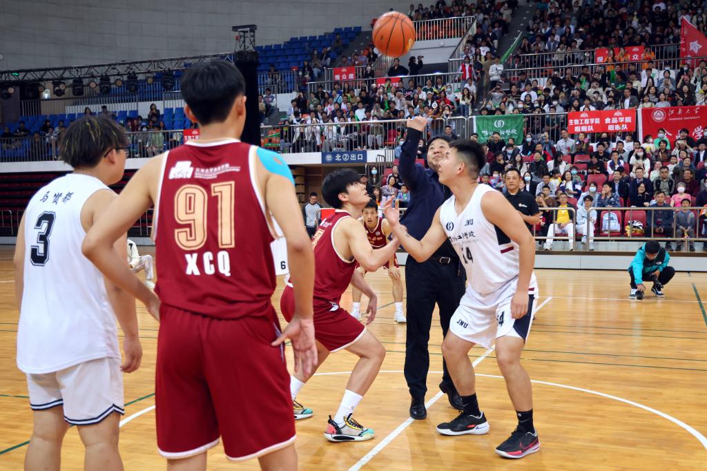 食品学院院长范大明作开场致辞。他指出,坚持“五育并举”培养时代新人是国家和社会健康可持续发展的重要保证。一代又一代学子,一棒接一棒奔跑,弘扬着“更快,更高,更强,更团结”的奥林匹克精神和伟大的中华体育精神。作为本次赛事的承办单位,食品学院衷心希望为师生们打造一场真正的篮球饕餮盛宴和一个全新的体育思政课堂。