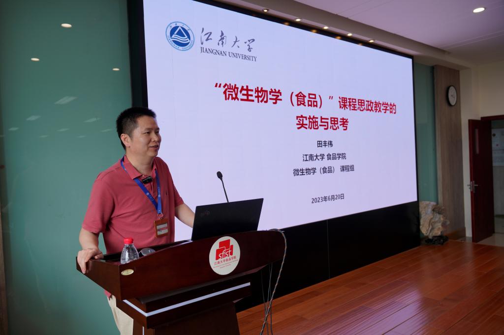 紧接着,田丰伟教授以“食品专业《微生物学》课程思政教学的设计与实践”为题,介绍了食品学院《微生物学》课程组开展课程思政教学的设计构建、教学实践和实施效果,并对课程思政教学的持续建设和完善进行了总结和梳理。他表示,《微生物学》是食品专业的核心基础课程,也是一个充满生命活力和社会价值的科学领域。他通过四个案例阐述了《微生物学》课程思政教学的设计原则、内容体系、方法手段和评价方式。他指出,《微生物学》课程思政教学要结合食品专业特点和社会需求,贯穿习近平新时代中国特色社会主义思想和中华优秀传统文化,突出科学精神和社会责任,培养学生的爱国情怀和创新能力。