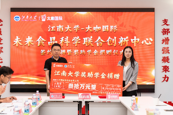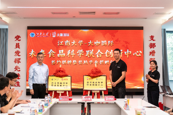 6月28日,“江南大学——大咖国际未来食品科学联合创新中心”签约揭牌暨奖助学金捐赠仪式在河南温县顺利举行。蜜雪集团副总裁、大咖国际事业群总经理赵红果,大咖国际事业群研发技术中心总监范军营、人力资源中心总监赵佳、企业发展中心总监刘先胜;bat365在线官方网站党委副书记、副院长李雷,教授王兴国、张晖,副教授吴港城等出席活动。签约仪式由大咖国际事业群王亚奇主持。