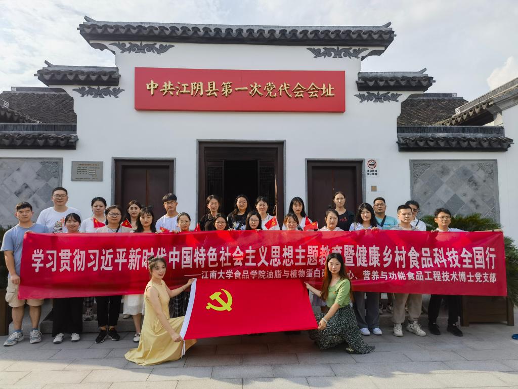 在全党深入开展学习贯彻习近平新时代中国特色社会主义思想主题教育之际,bat365在线官方网站组织党员同志,以实际行动助力乡村振兴,共筑健康中国。7月14日,油脂与植物蛋白研究中心博士党支部,营养与功能食品工程技术、国家工程实验室联合博士党支部两个省级样板支部组成近四十人的博士科技服务团前往江阴市新桥镇,开展“健康乡村,食品科技全国行”党日活动与社会实践活动。
