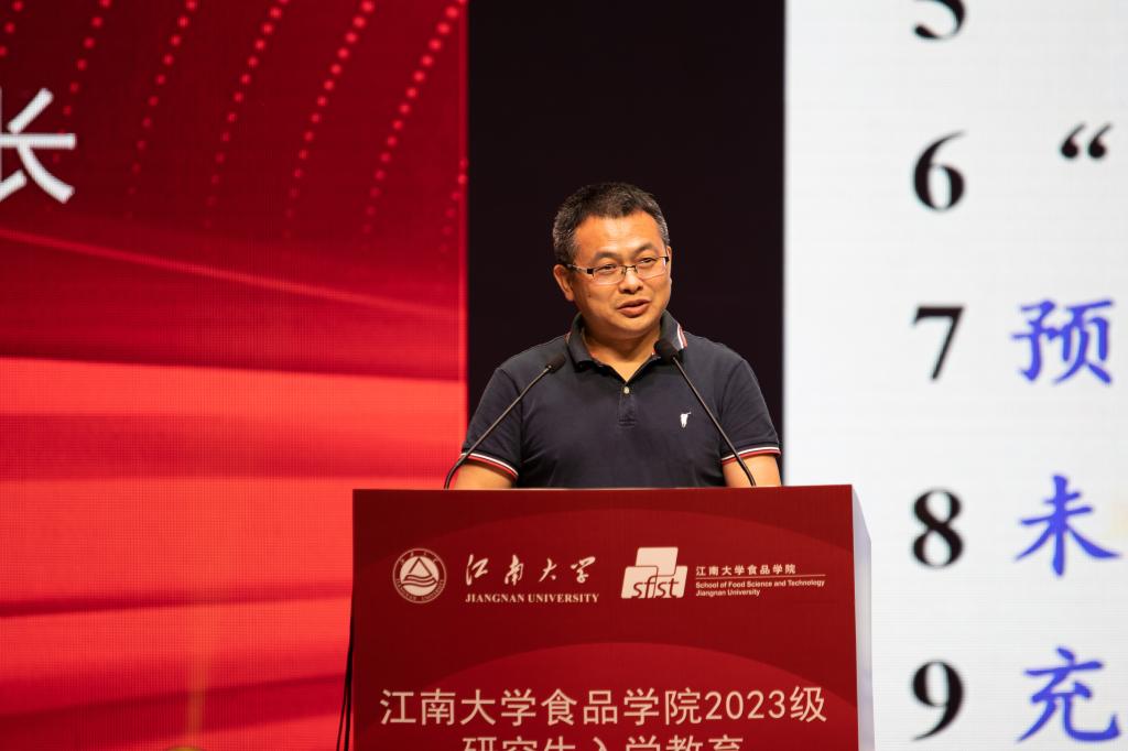 范大明对研究生新生的加入表示热烈欢迎。他强调,研究生阶段要深化交互认知,与导师同频共振;要强化时间管理,以课题为主脉络开展多维度学习研究;要培养“专家思维”,从更高的层面看待科学问题。他希望同学们积极践行“敢为天下先”的江南食品精神,都能取得优异的成绩。
