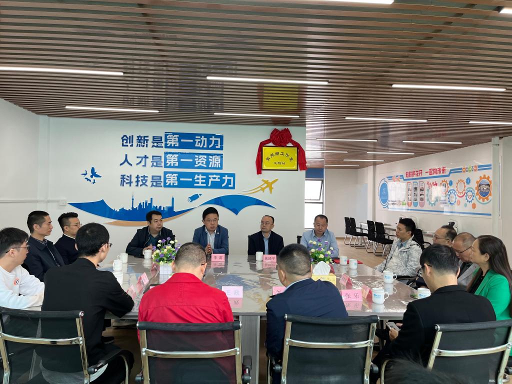 调研团还走进浏阳市党外知识分子联谊会,与众多企业家面对面座谈交流。期间,浏阳市委统战部常务副部长焦清平与李雷共同为bat365在线官方网站产教融合协同育人基地(宋天翔工作室)揭牌。