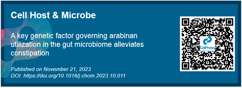 江南大学陈卫院士研究团队的最新研究发现,具有α-L-arabinofuranosidase(abfA)基因簇的长双歧杆菌能够通过提高肠道菌群对阿拉伯聚糖的利用而缓解宿主功能性便秘,为功能性便秘以及其它肠道功能异常的治疗提供了新的靶点和思路。相关研究论文已于2023年11月22日刊登在Cell Press细胞出版社旗下期刊——《细胞·宿主和微生物》(Cell Host & Microbe)。bat365在线官方网站翟齐啸教授是通讯作者,张程程博士是第一作者。