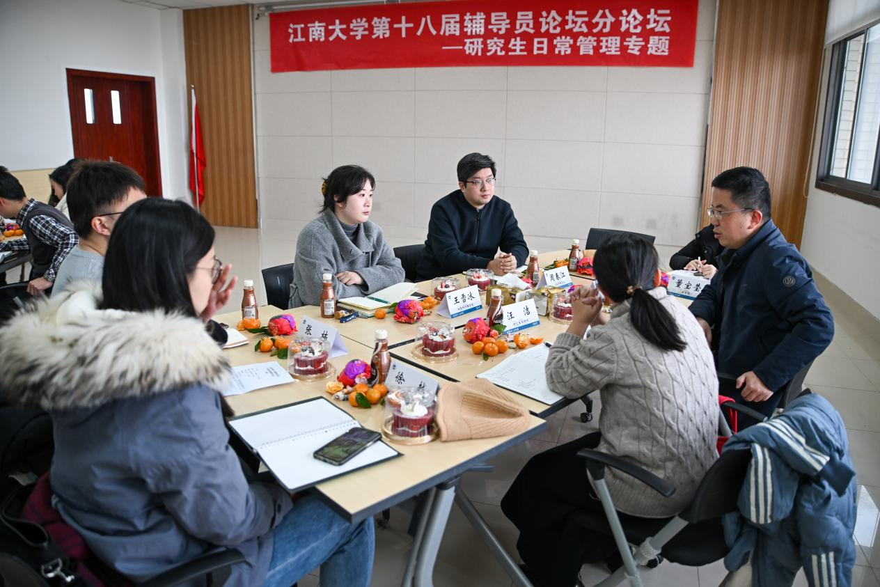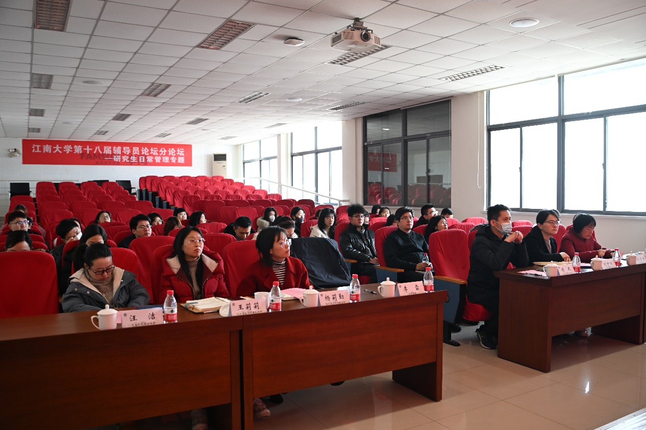 2023年12月27日上午,分论坛顺利举办第一场活动。党委研究生工作部副部长、研究生院副院长陈周,食品学院党委副书记、副院长李雷,商学院党委副书记、副院长徐静及来自各学院20余名专兼职辅导员参与活动。