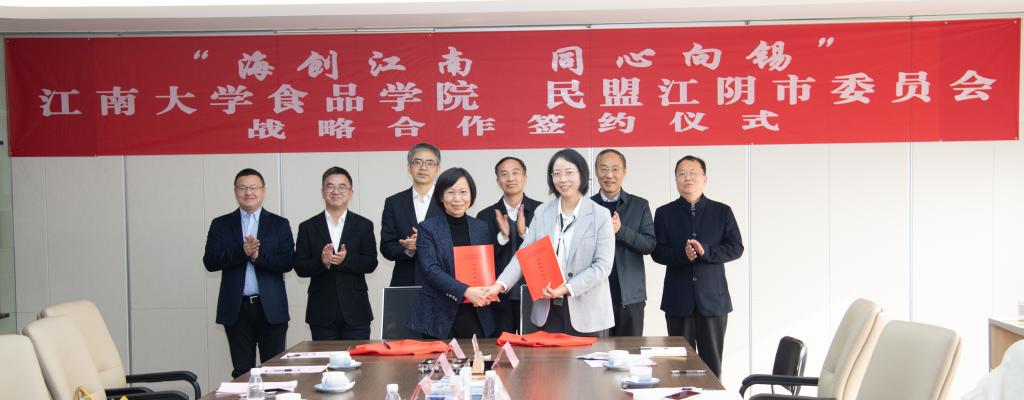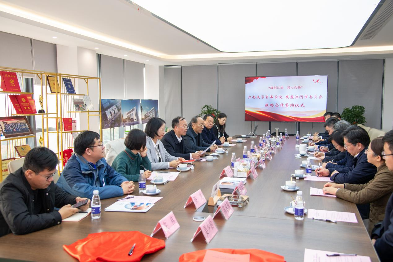 为积极响应“海创江南·同心向锡”行动,深入推动江南大学和江阴之间的合作,2024年1月6日,bat365在线官方网站党委与民盟江阴市委员会在江苏佰澳达科技有限公司签署战略合作协议。中国工程院院士、bat365在线官方网站教授、民盟无锡市委会原主委金征宇,江南大学党委常委、统战部部长朱飞,食品学院党委书记傅莉莉;民盟无锡市委会专职副主委兼秘书长、无锡市政协副秘书长肖剑峰,中共江阴市委常委、统战部部长郁秋皓,江阴高新区党工委副主任赵志军等出席签约仪式。仪式由民盟江阴市委会主委、江阴市政协副主席、江阴市教育局局长钱晴主持。