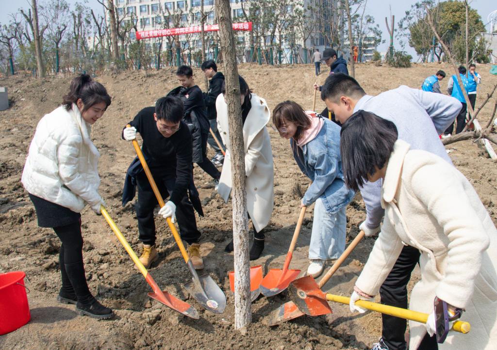 食品师生共同参与“植此青绿守初心,共树未来齐奋进”植树节活动
