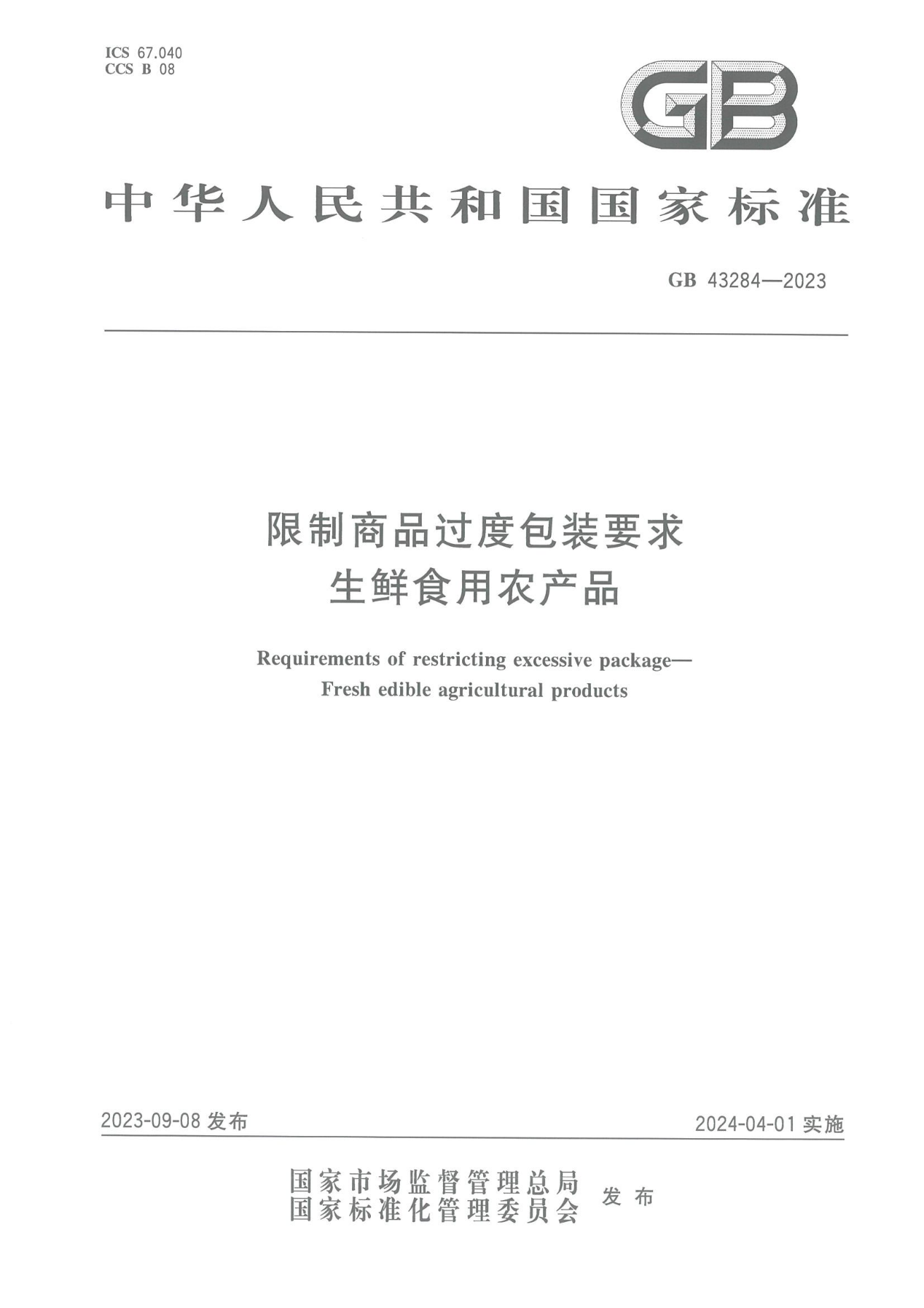 《限制商品过度包装要求 生鲜食用农产品》国家标准正式实施