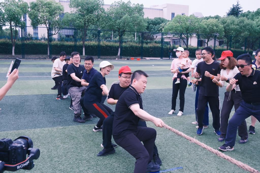在团体比赛环节,活动氛围愈发热烈。一绳到底、乒乓能量传输、不倒森林、赶猪跑等项目,不仅是对老师们团队协作能力的全面考验,更展现了他们的敏捷身手和运动体能。尤其是压轴的“楚汉争霸”拔河赛,更将现场气氛推向顶点。对战队员紧握绳索、齐心协力、奋力拉拽,每一次拉锯都伴随着观众的加油呐喊,场面激烈而撼动人心。