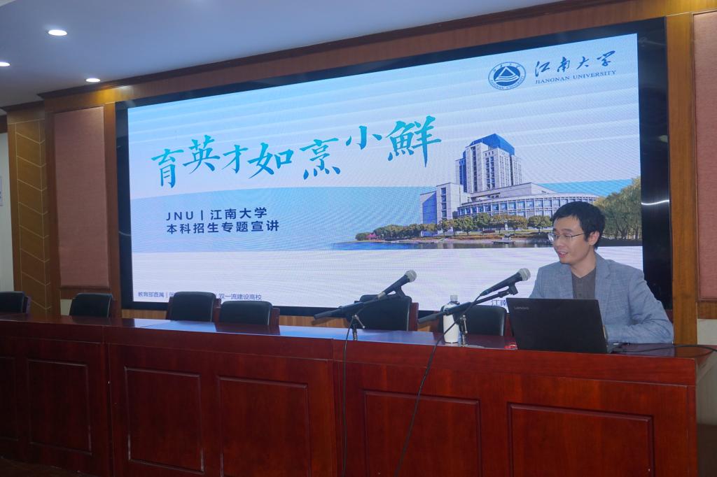 签约仪式结束后,吴琰嘉为高一学生作《育英才如烹小鲜》本科招生主题宣讲,详细介绍了江南大学的招生政策、学科优势、专业特色及校园生活等方面的情况。