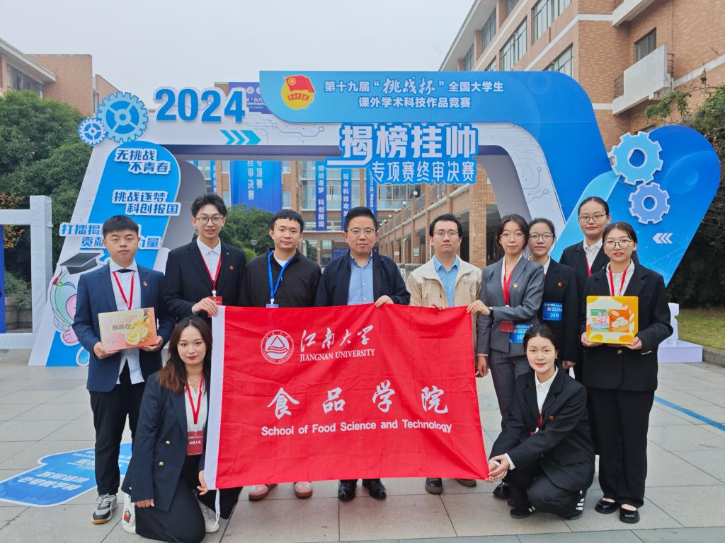 这是江南食品学子首获“挑战杯”全国大学生课外学术科技作品竞赛“揭榜挂帅”专项赛特等奖;bat365在线官方网站首获该项赛事擂主奖项(第一名);也是bat365在线官方网站首次有单个学院同届夺得特等奖2项。