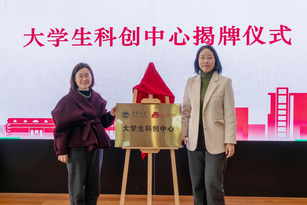 傅莉莉、张慧琪共同为江南大学大学生科创中心(食品学院)揭牌。傅莉莉宣读科创导师聘任名单。张慧琪为王鹏颁授“江南大学创新创业导师”聘书。李雷向当选为“食品学院大学生科创导师”的代表颁授聘书。