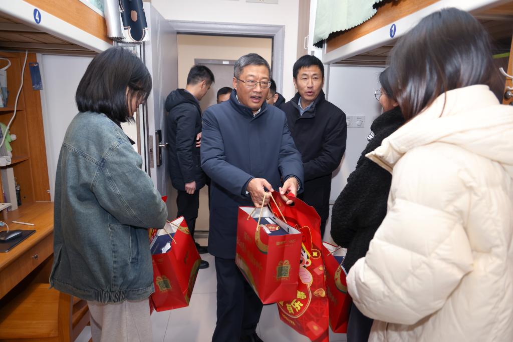 金蛇起舞迎新春,祥瑞满盈福运开。在蛇年春节来临之际,校院领导教师走访慰问寒假留校学子,为同学们送上最为诚挚的节日祝福和充满心意的春节礼包。师生们齐聚一堂,共庆新春佳节。