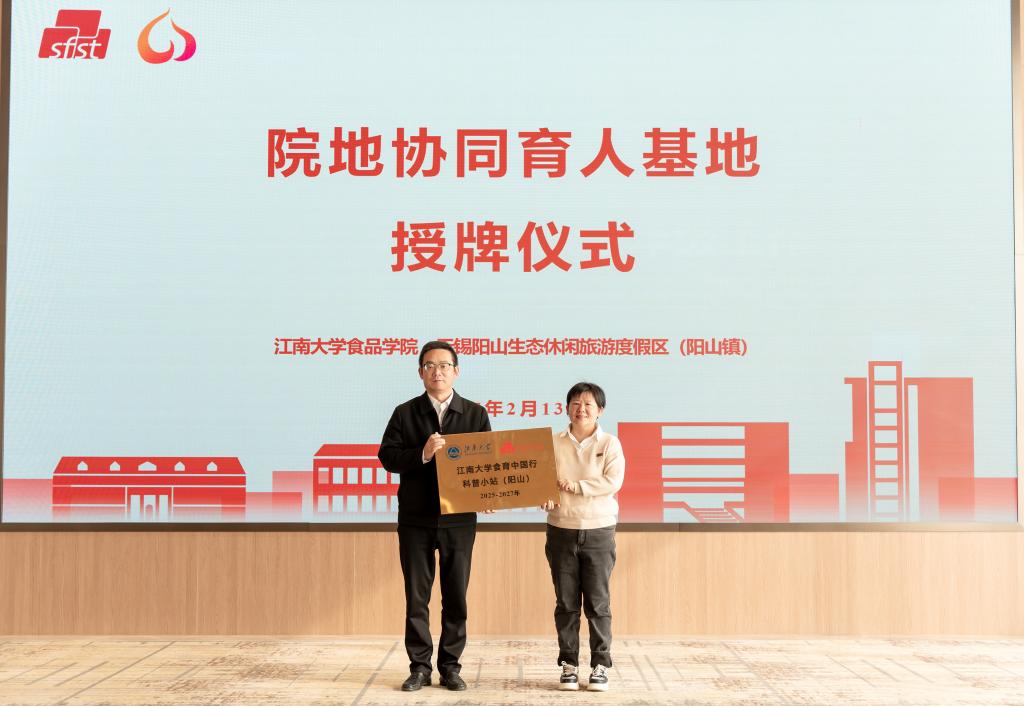 活动现场,举行“江南大学食育中国行科普小站” “bat365在线官方网站实践育人校外基地”授牌仪式。与会人员还实地参观了院士小镇,深入了解阳山依托当地优质生态资源与坚实产业基础,建设汇聚顶尖智慧科创高地、融合自然与人文“院士之乡”的相关成果。