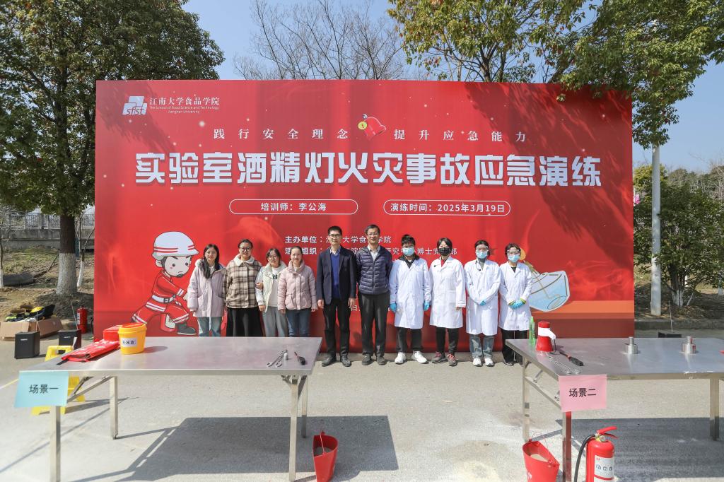 近日,食品学院举办“实验室酒精灯火灾事故”应急演练。副院长程力,实验室主任王文龙,粮食新质利用与食品工程化研究团队、酿造微生物与发酵食品研究团队、功能蛋白资源挖掘团队实验室安全负责人及相关学生共同参与演练活动,2024级硕士研究生全体观摩。本次活动由谷物与淀粉博士党支部、食品营养与功能博士党支部及油脂与蛋白博士党支部共同组织,学校保卫处、食品科学与资源挖掘全国重点实验室提供技术及场地支持,应急演练由青岛海尔生物医疗股份有限公司安全培训师李公海主持。