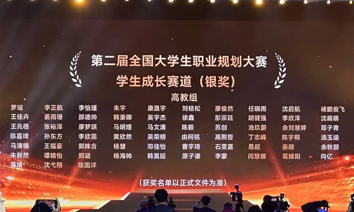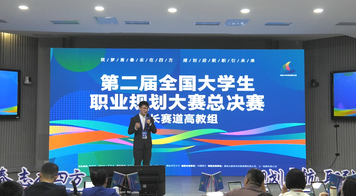 4月19日,第二届全国大学生职业规划大赛全国总决赛在湖南长沙落幕。bat365在线官方网站大三学子胡健强在指导老师陈婷、李雷的带领下,勇夺成长赛道高教本科组国赛银奖,实现bat365在线官方网站在此赛事国奖零的突破。