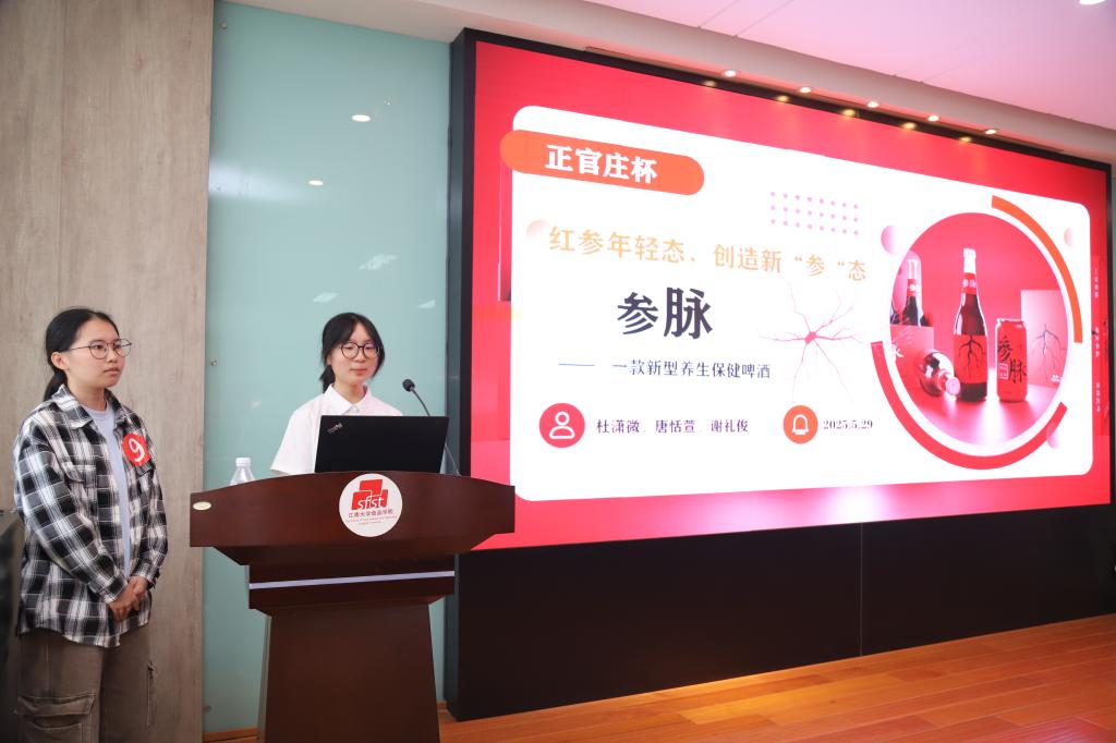 经过选手激烈角逐和评委严格评审,最终,来自江南大学的《参脉》荣获一等奖;来自石河子大学的《“马面裙”系列红参葡萄酒》和来自西南大学的《红参蓝靛果汁饮品》荣获二等奖;来自江南大学的《“参”呼吸-红参坚果气泡黑巧克力》、山西师范大学的《酵醒元气红参饮》、新疆农业大学的《红参臻果糕》、安徽师范大学的《香猪觅纸—风味红参猪肉纸》以及浙江工业大学的《元气红参枸杞燕麦脆》荣获三等奖;另有多项作品获优秀作品奖。与会领导嘉宾为获奖团队颁发荣誉证书,现场掌声雷动、气氛热烈。