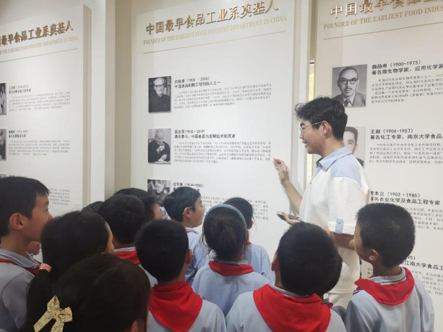 溯源来时道路,循迹发展脉络。第一站食品学科史馆,小朋友们在食代讲解团解说人员的带领讲解下,沿着学科发展历史深入参观。国民食品、历史教材,从早期食品加工技术的雏形,到现代食品科学体系的建立,一幅幅珍贵的历史图片、一件件实物展品,让孩子们直观感受到食品科技历经岁月沉淀的峥嵘发展历程。