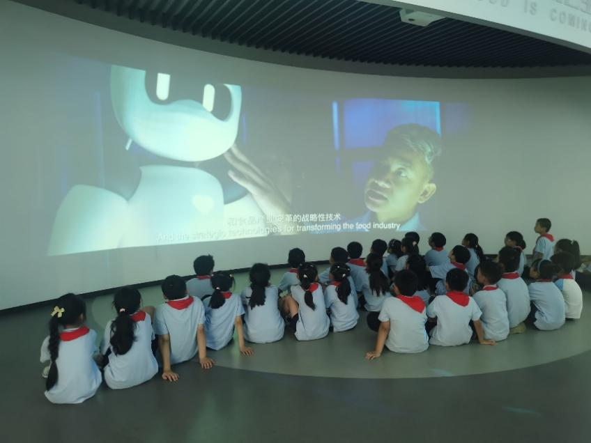 立足科学前沿,把握“食“代脉搏。在浩瀚的学科历史中精准触摸到科技进步的脉络后,小朋友们观看了“未来食品”宣传片,食品科学智能化、绿色化的产业发展趋势,国家树立和践行大食物观的呼吁,小朋友们在传统与现代、历史与未来的交汇中深刻理解了食品科学与民生保障、社会发展的紧密联系。
