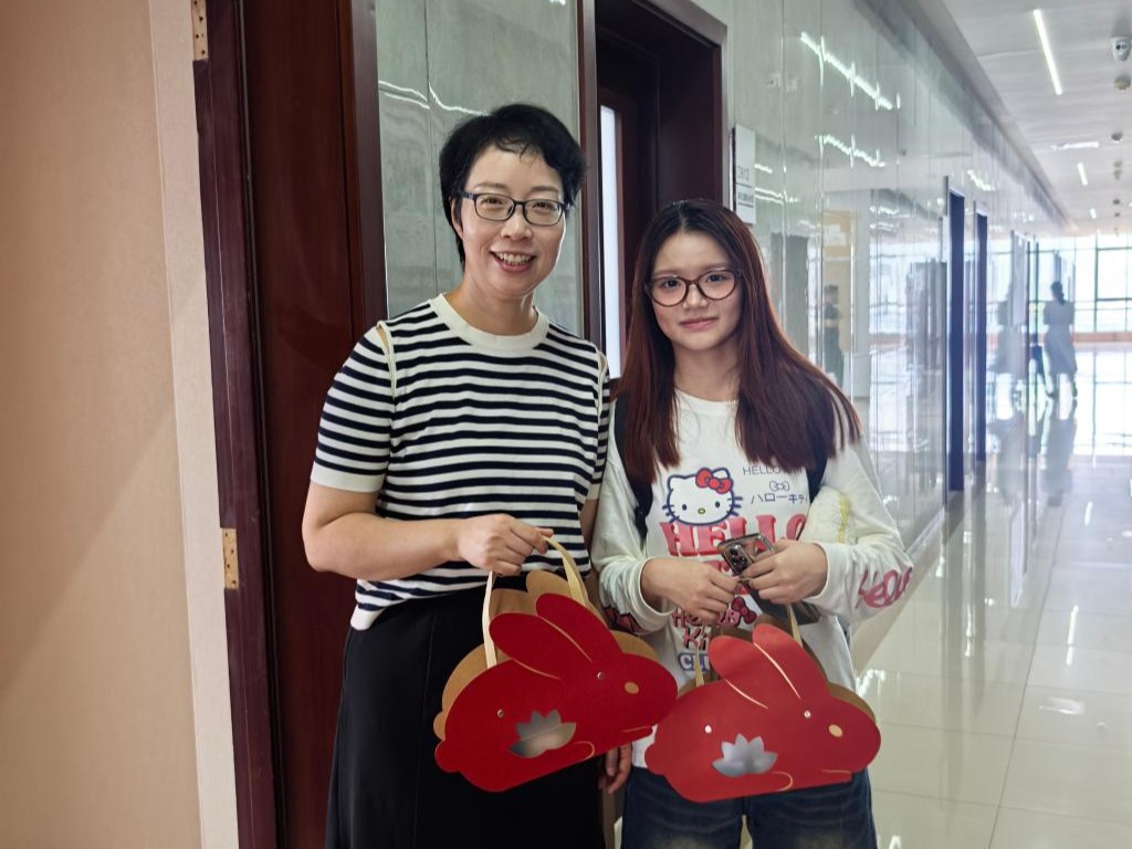 团圆之意,不仅在家庭之间,也在校园之中。食品学子将亲手制作的月饼礼盒送至老师手中,以专业浪漫表达对师长的敬意与感谢。一块月饼,串联起师生情谊;一份心意,让这个中秋在校园中更显温暖。