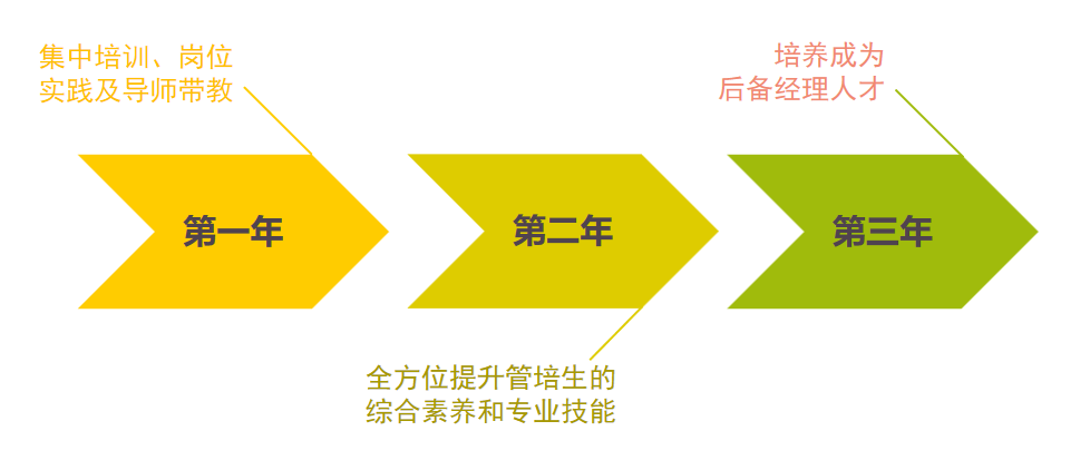 公司为校招管培生倾斜培训资源,并搭建了从学生人到职场人、从经理级再到更高层次的管理角色搭建完整的培养体系,将管培生逐步培养成为公司关键岗位继任者和后备经理人才。