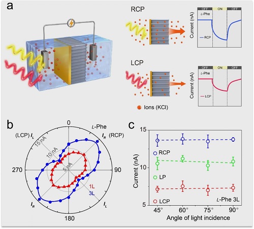 论文共同通讯作者、江南大学教授匡华告诉《中国科学报》:“左圆偏振光(LCP)和右圆偏振光(RCP)的区分是一个重大的科学挑战。左和右手性光子差异通常不超过百分之一。而纳米通道的限域传输为有效放大微观信号提供了潜在的可能。”